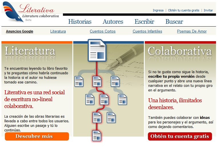 Literativa es «una red social donde lectores, escritores y amantes de la literatura pueden mostrar su trabajo, expresarse, conocerse y relacionarse«. Se puede participar colaborando en las historias de diferentes maneras: «creando tu propia historia, continuando pasajes en las historias de otros usuarios, comentando los pasajes escritos, sugiriendo ideas de personajes y para el argumento que otros autores podrán utilizar como inspiración al escribir las continuaciones de la historia«.
