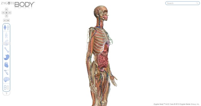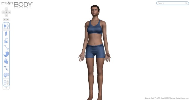 Zygote Body muestra el cuerpo humano en tres dimensiones. Usa un visor 3D Open Source desarrollado por Google.
