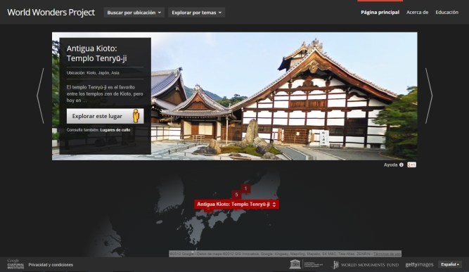 Google World Wonders Project «es una plataforma que pone a disposición de los usuarios los lugares patrimonio de la humanidad del mundo antiguo y moderno a través de Internet«.