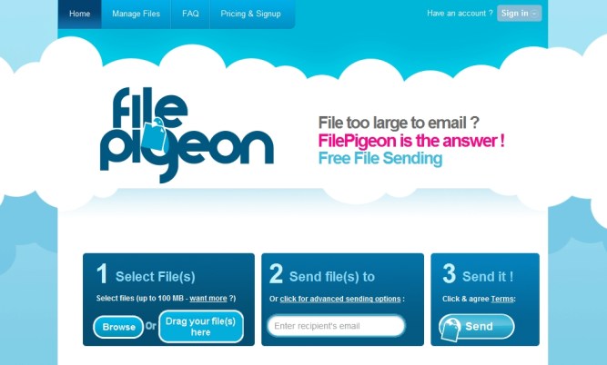 FilePigeon es otra alternativa para enviar y compartir archivos grandes por medio de Internet.