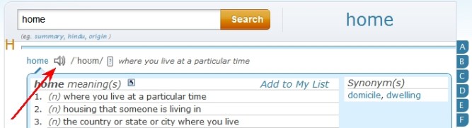 Si se desea escuchar la pronunciación de la palabra buscada, se da clic en el ícono en forma de parlante.