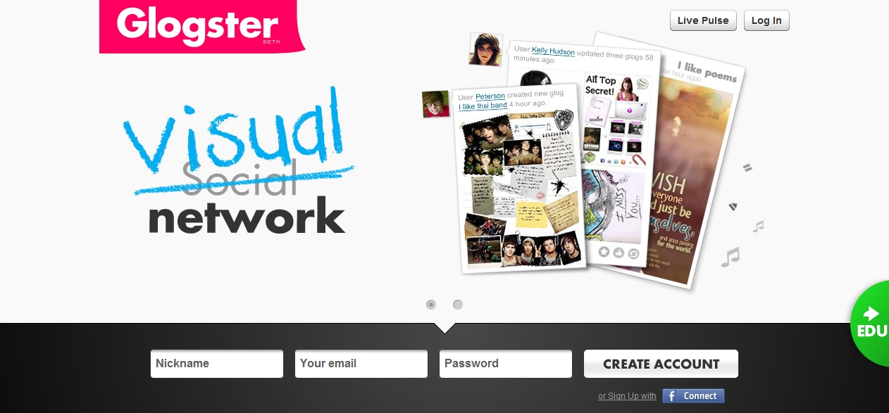 Glogster es una red social que permite a los usuarios crear carteles interactivos llamados GLOGS. Un «Glog», forma abreviada de «blog gráfico», es una imagen interactiva y multimedia. Se ve como un cartel, pero se puede interactuar con el contenido. El usuario inserta texto, imágenes, fotos, audio (en formato MP3) y videos, efectos especiales y otros elementos en sus GLOGS para generar una creación multimedia en línea.