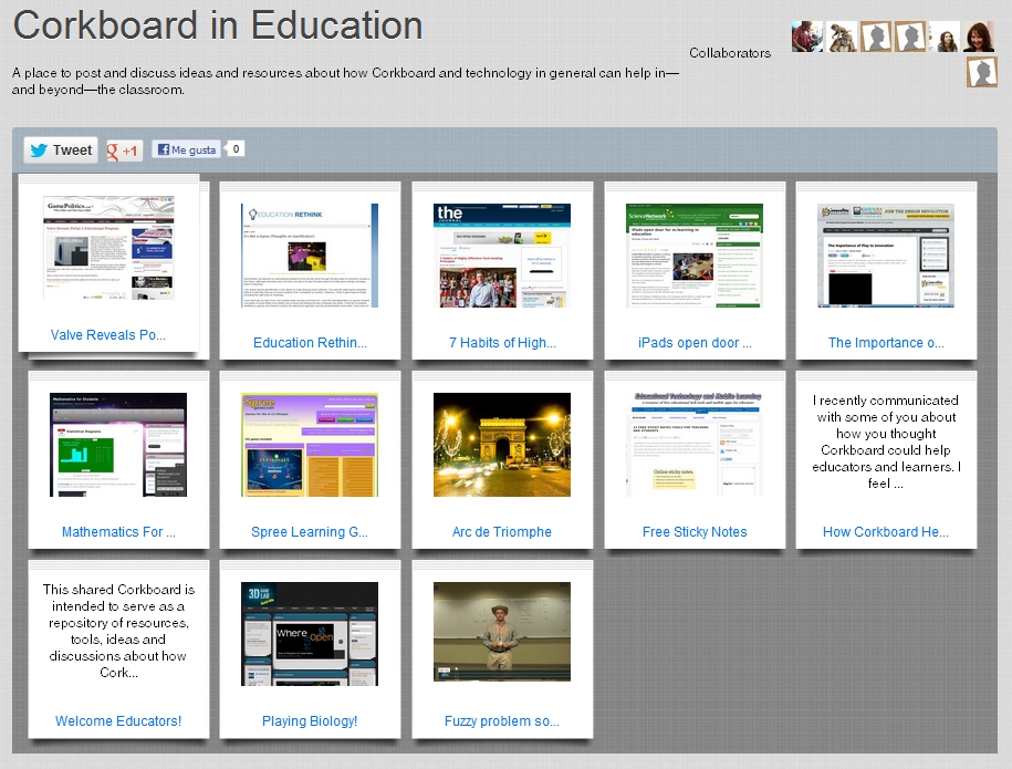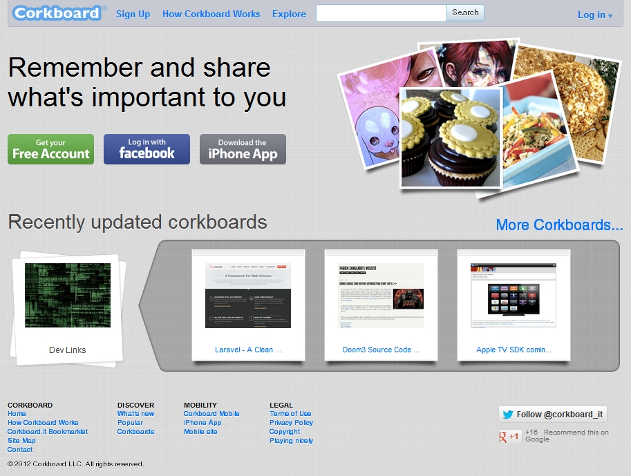 Corkboard es una red social empleada para compartir lugares, fotos, notas, productos, sitios y códigos QR desde un teléfono celular o una computadora, por medio de correo electrónico, mensaje de texto o voz. Su objetivo principal es facilitar que las personas recuerden y recomienden las cosas que han encontrado, que las valoraron y que les gustó.