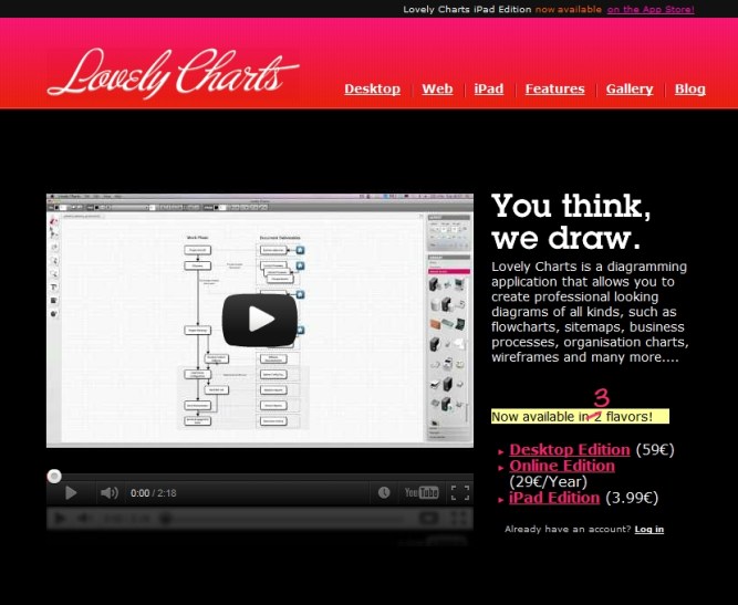 Lovely Charts es una aplicación que permite crear toda una serie de diagramas: de flujo, mapas, negocios, organigramas, estructuras alámbricas y muchos más. Existen versiones de escritorio, en línea y para IPad con precios de $ 72.49, $ 35.63 y $ 4.9 respectivamente. Sin embargo, se puede descargar una versión de prueba o tener acceso a un demo en línea. En este caso, solamente es necesario un nombre de usuario, dirección de correo electrónico válido (a él se envía un código de acceso único) y una constraseña.