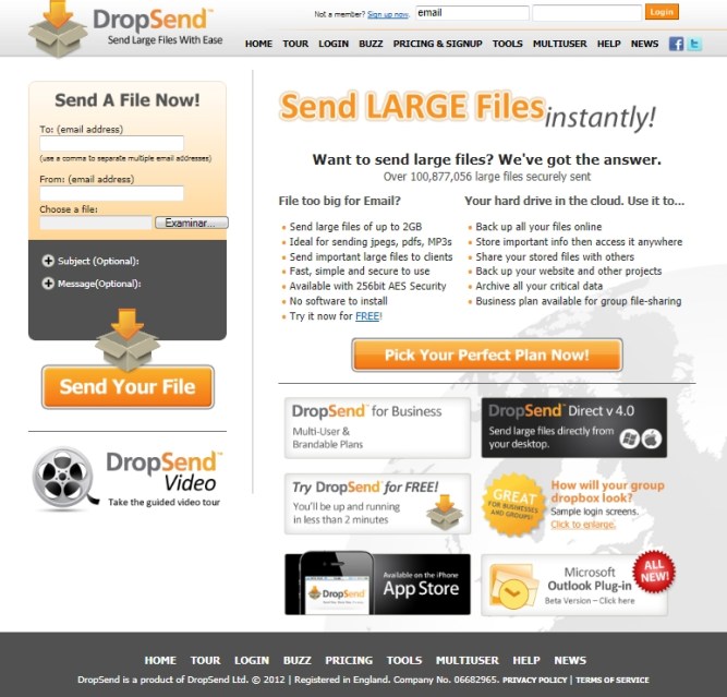 DropSend es una aplicación web que permite el envío de archivos grandes. No es necesario instalar algún software para poder emplearla.