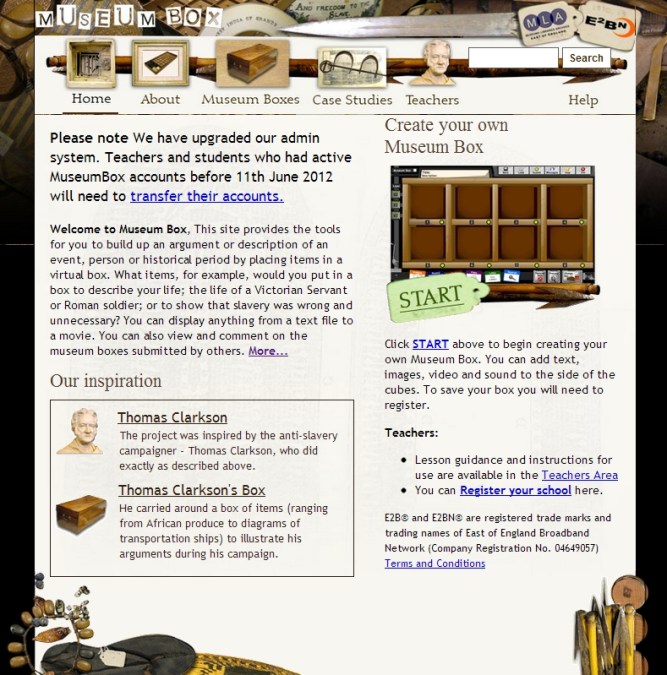 Museum Box es una web que permite alojar diferentes objetos: texto, imagenes, videos y sonidos mediante cajas (cubos) virtuales.