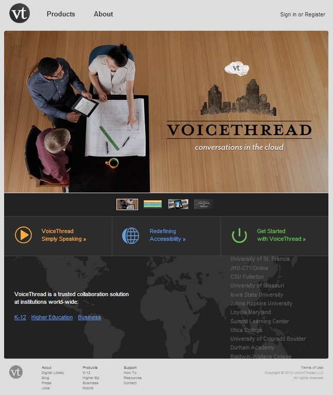 VoiceThread es una herramienta que permite crear álbumes multimedia en los que los visitantes pueden dejar comentarios por medio de texto (teclado), sonido (micrófono) o video (webcam). Cada álbum puede alojar documentos (PDF, Microsoft Word, Microsoft Excel o Microsoft PowerPoint), imágenes, audio o video. La idea principal es mantener conversaciones sobre el contenido multimedia cargado.